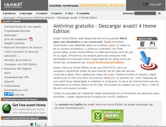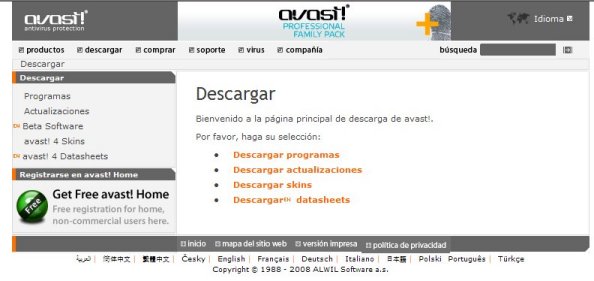 todos pero con una pequeña diferencia Vamos a bajar este antivirus y activarlo por un periodo de un año. Entramos en la pagina http://www.avast.com. Automáticamente nos redirecciona a otra que aparece directamente en castellano (http://www.avast.com/index_esp.html)