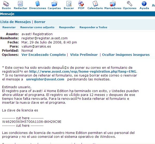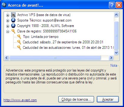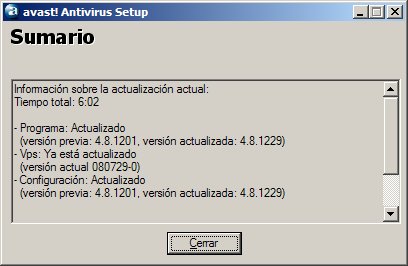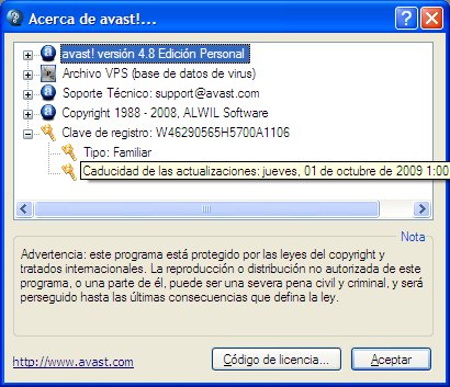 Ya esta nuestro programa registrado para un año. Cuando hay actualizaciones del Avast aparece un mensaje emergente advirtiéndolo. Por supuesto que hay que aceptarlas para tener un grado relativo de seguridad.