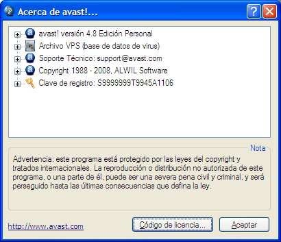 Pinchamos en Acerca de avast!